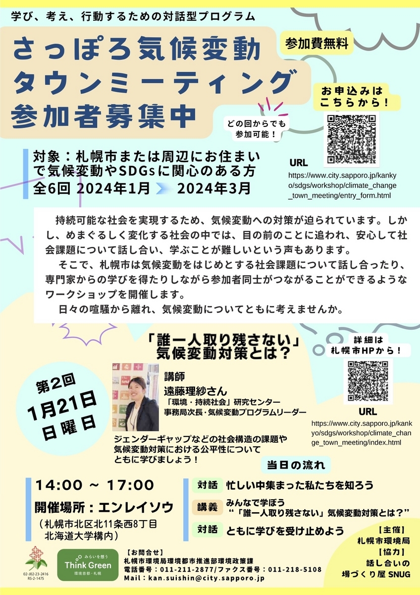 2024年1月8日(月祝)に札幌市環境局主催の「さっぽろ気候変動タウンミーティング 」第1回目がスタートしました。