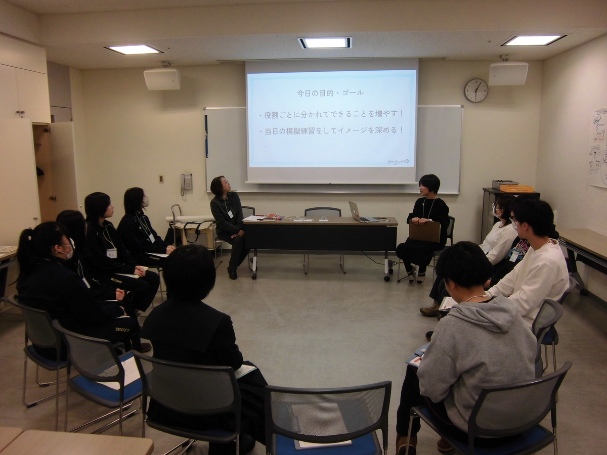ファシリテーターチームは目的について確認したのち、ファシリテーションの実践をしながらお互いフィードバックし合います。