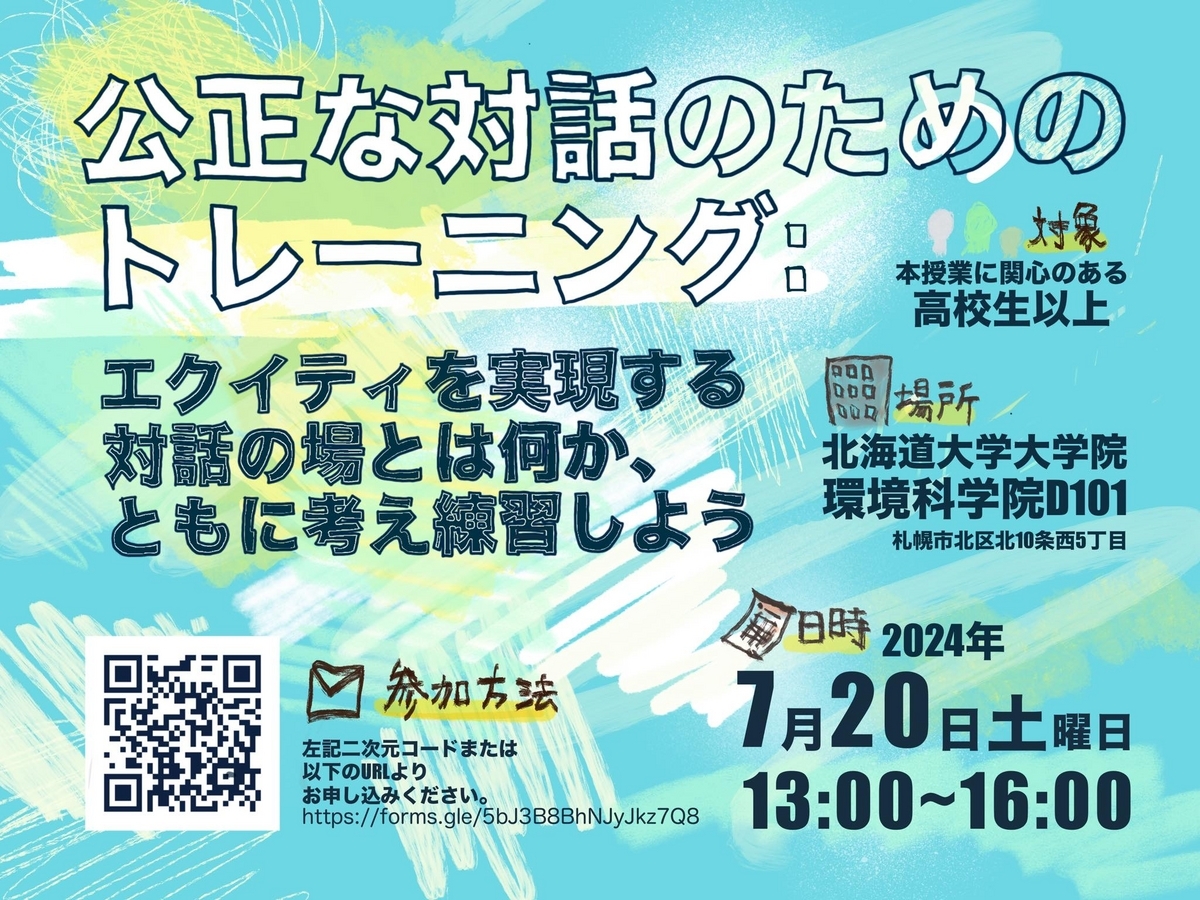 今回の授業タイトルは「公正な対話のためのトレーニング:エクイティを実現する対話の場とは何か、ともに考え練習しよう」です。